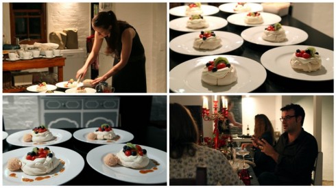 • Fifth Course: Pavlova with tomato fruit salad and tomato jam ice cream