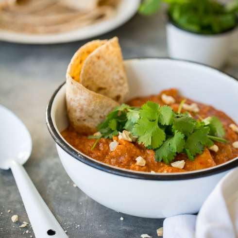 Tasha, our photographer, told me that they had recently used butter chicken curry as a filling for soft white rolls on a road trip. Now that sounds brilliant! Don’t forget the fresh coriander, it adds a welcome fresh touch to the richness of the sauce.