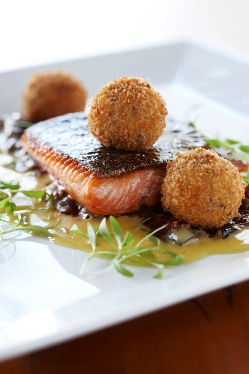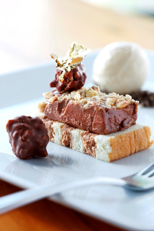 For main course, I opted for the lasagna of braised lamb with taleggio bechamel, dried fruit chutney & hazelnuts (with a glass of Simonsig Cabernet Sauvignon Tiara – their flagship wine), and Schalk ordered the line fish with asian ratatouille, shiitake arancini, & lemon beurre blanc (paired with a glass of Simonsig Chenin Blanc). Although the lamb lasagne was a really comforting winter dish, it was the line fish that stole the show for both of us. Such a clever combination of zesty flavours and delicate textures.