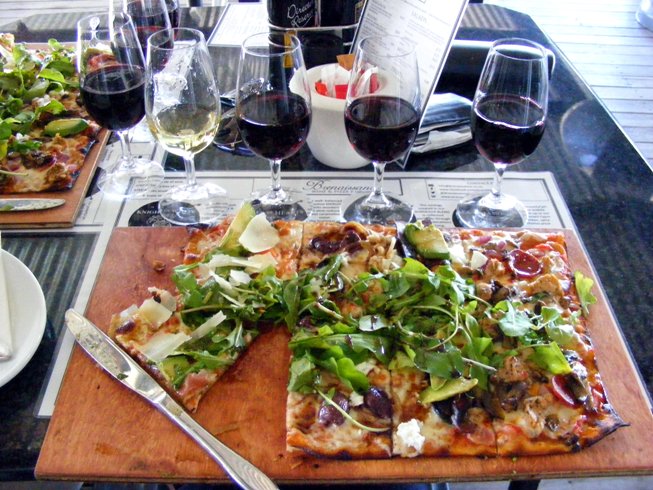 The pizza and wine pairing at Café Blanc de Noir.