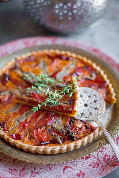 Sweet red pepper, anchovy and tomato tart: (serves 6-8)